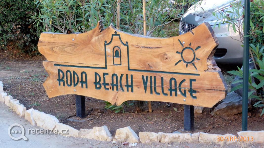 Na řecké poměry velmi dobrý hotel, někde mezi 4 - 5 hvězdičkami, situovaný u vesnice RODA, asi 3 km od Acharavi na severní straně ostrova Korfu. Hotel je trochu stranou od vesnice, po pláži však asi 400 m, po silnici asi 3 km.