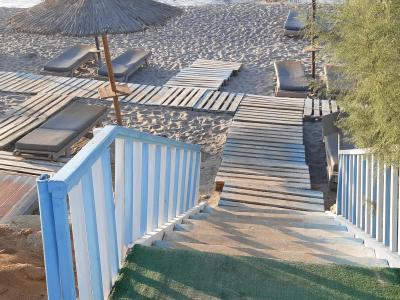 Pláž to byla jedna velká hrůza! Trávili jsme proti zvyklosti čas u bazénu. A chodili si vždy zaplavat do moře. Vstup na pláž rozvrzané dřevěné schody a dále po starých europaletách