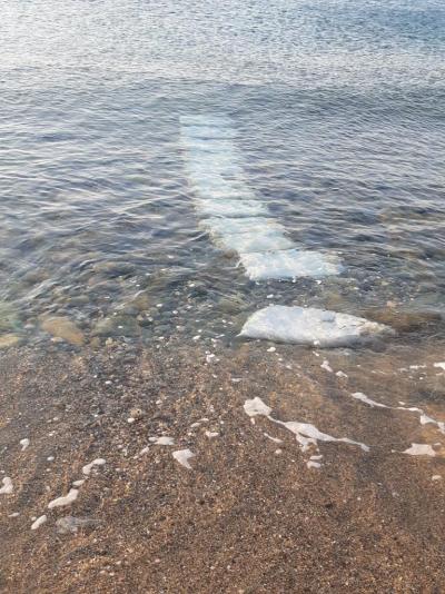 Vstup do moře, v kterém jsou balvany velikosti menší dýně bez bot je také zážitek i když vybudovali "cestičky" z pytlů z pískem místy stejně potrhané.