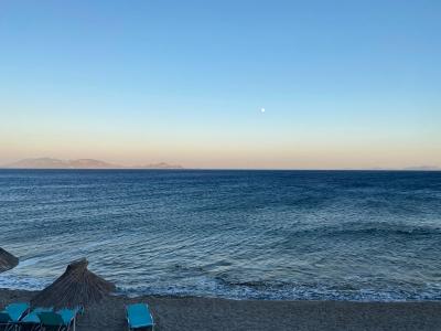 Pláž je pouze vybagrovaná stráň hned u silnice, částečně písečná. Vstup do vody pouze v botách! Bar na pláži není, musíte dojít až k hotelu což je cca 200m. Moře čisté, nějaké rybky, ježky a platýze potkáte.