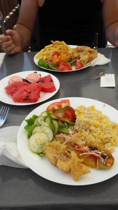 Na stravu se v recenzích hodně nadávalo, ale podle mě to není tak hrozné, vždy se dalo vybrat a jídlo bylo i chutné. Navíc nejsem typ, co by úplně využíval all incslusive, takže jsme si např. na večeře zašli občas do místních taveren. Hotelová strava byla pro nás spíš jako taková možnost, že jsme měli ráno snídaně a k obědu jsme si mohli z pláže odběhnout na něco lehkého. Jinak jeden den byla i chobotnice, asi 2x byl gyros, kuřecí křidýlka, lilky, papriky (které jsou vynikající). Zeleniny dostatek, z ovoce pouze meloun a broskve, ale nevadí. A vždy nějaký dezert, který býval za mě dobrý.