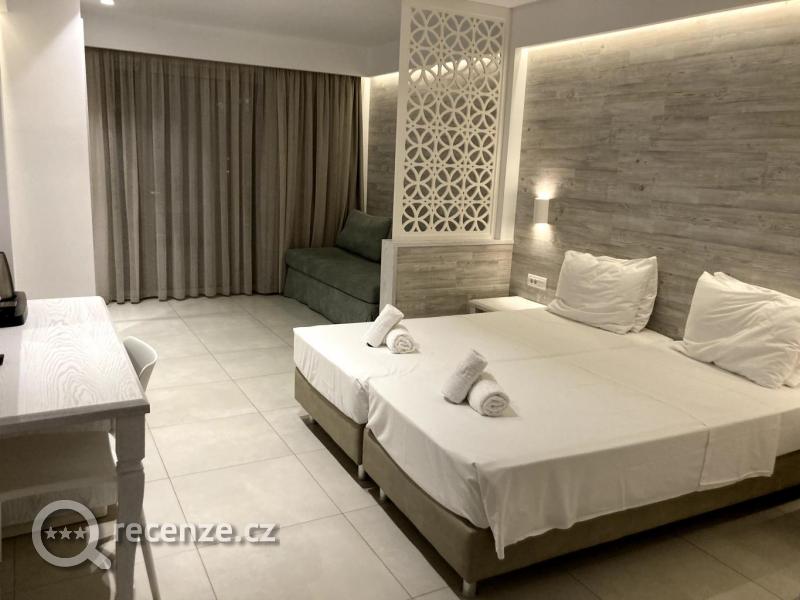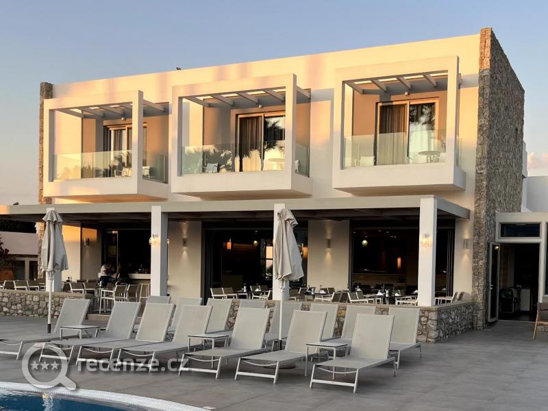 Příjemné ubytování moderního typu. Hotel spíš klidnějšího rázu. Bazén v provozu pouze od 10.00-18.00hod. ale nikdo to vyloženě nehlídá. Moře je blíž, než většina zdrojů píše. Zhruba 300m . Asi 5 min klidnou chůzí....