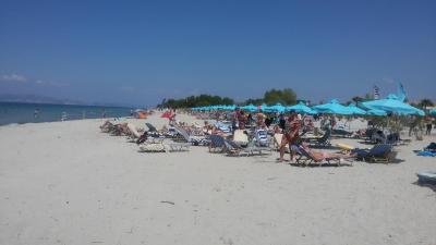 městská pláž je příjemná, slunečník s lehátky za 6 EURO, nádherná je ovšem široká bílá pláž před pětihvězdičkovým resortem, přes který se prochází k moři, tam chtějí za slunečník s lehátky 30EURO!!!, ovšem hlavně proto, aby udrželi prázdná místa pro jejich ALL INCLUSIVE hosty, takže jsme si dali ručníky na písek a užívali si tuto krásnou pláž:-) Moře je překrásné, písečné dno, daleko mělko, křišťálová voda...pro děti ideální.
