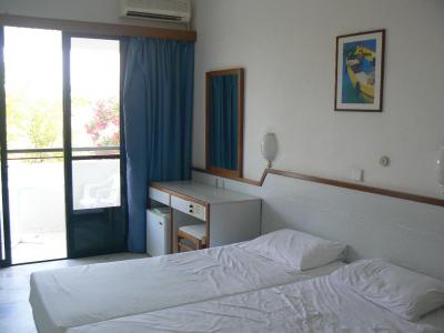 Dvoulůžkový pokoj v prvním nadzemním podlaží, nábytek zřejmě od otevření hotelu v roce 1994, sprcha a WC v jedné místnosti bez možnosti odvětrání, není zde el. zásuvka pro fén. Malá lednička velmi hlučná. Klimatizace nebyla centrální (informace v nabídce), ale na každém balkóně za poplatek 6 euro/den. V noci naštěstí puštěn jen 1 ks, přesto hluk budil ubytované v okolních pokojích (klima už něco pamatuje -1994). Jak se bude v noci spát, když si klimatizaci v noci pustí 30% ubytovaných??? Pozor ! Rodinné pokoje (dvoulůžko+palanda) jsou v suterénu s výhledem do zdi, bez okna, jen balkónové dveře s mříží.