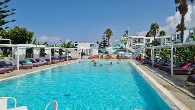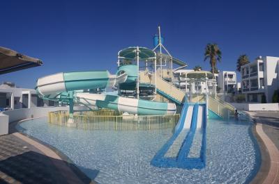 Hotel má krásnou, pečlivě udržovanou zahradu a klasický bazén s pozvolným přechodem do hloubky. K dispozici je i brouzdaliště a aquapark s omezenou otevírací dobou (10:00–17:00), občas prodlouženou. Voda v aquaparku byla studenější.