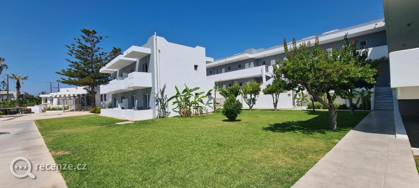 Okolo budov je pěkná zeleň, zahrada, je vidět že o ní pečují, zalévají. Hned vedle hotelu jsou obchůdky se suvenýry, autopůjčovny, taverny, cestovkou co nabízí výlety, markety. Městečko je malinké, není špatné si na dva či tři dny zapůjčit auto - levněji seženete přímo u místní půjčovny než přes CK /VW Polo 40 euro den/ a objet si ostrov. Kos má rozhodně co nabídnout kam se podívat.