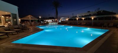 Hotel má jeden menší bazén s lehátky, bar u bazénu a jídelnu. Možno využívat bar a bazén u sousedního hotelu Thalaseo - je větší a teplejší, kde je i společná recepce. Hosté z Thalasea chodí na stravu do tohoto hotelu, jsou to dva objekty,co mají společnou recepci a jídelnu. Číšníci v pohodě, v jídelně doplňovali jídlo, ihned uklízeli stoly, kmitaly sem tam, jakmile nebylo kam si sednout, hned odněkud přinesli další stoly a židle.