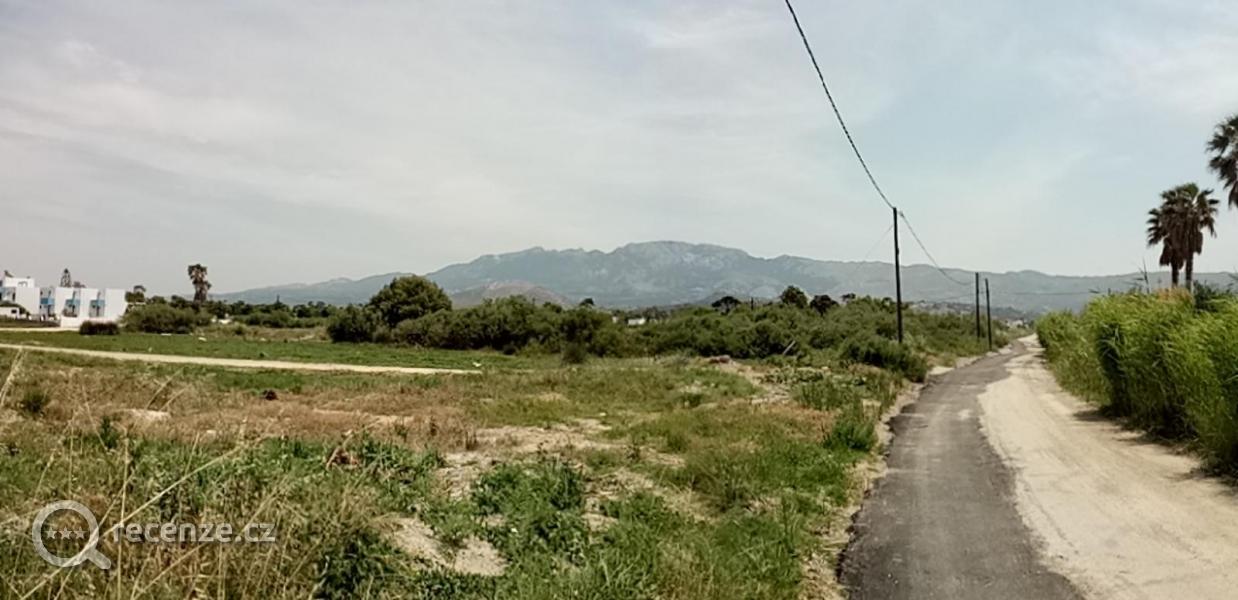 Pláž byla vzdálena cca 1 km akorát na procházku. K pláži mezi poli, za křižovatkou podél cestičky potok se stovkami malých vodních želv. Nebo se dá jít z druhé strany po asfaltové cestě kde jsou supermarkety, bary a taverny. Pláž vzhledově krásná, menší kameny na začátku potom písek ---> pláže v okolí na ostrově najdete hezčí např Kefalos . Období začátek června, málo řas a skoro žádní komáři.