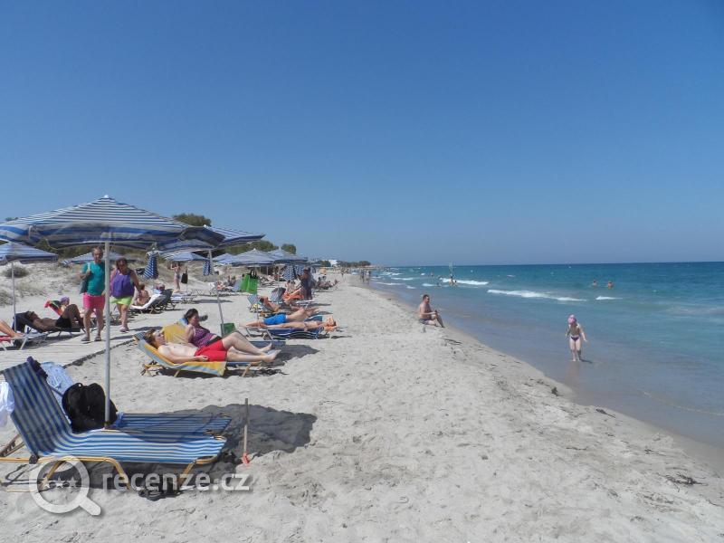 Pláž se mi moc líbila, není to taková ta klasická široká pláž s tisícem lehátek, je taková víc přírodní. Není přímo u hotelu, ale ta cesta není tak hrozná.