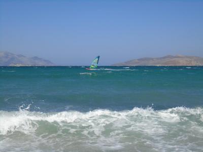 Moře je krásné, ale může tu být poměrně větrno a velké vlny. Ideální je na windsurfing, ale když je klidné, dá se zde krásně plavat, vstup je pozvolný, písečné dno, není zde žádné nebezpečí rozříznutí nohy apod. Patří, podle mne, k nejhezčím mořím v Řecku (projela jsem již několik ostrovů i pevninu).
