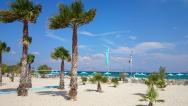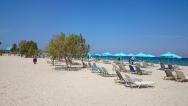 Písčitá pláž je trošku dál, ale klidnou procházkou jsme na ní byly cca za 12 minut. Cestou jsme míjely pasoucí se krávy, kozy a kousek před pláží byla strouha s vodou, kde bylo asi 50 malých želviček. Pláž prostorná, čistá, písčitá, vstup do moře také písčitý. Je to severní pobřeží ostrova a celkem větrné. Svědčí o tom i několik windsurfingových stanic v okolí, i přímo na pláži v úrovni hotelu Roselands a Venos apartments.