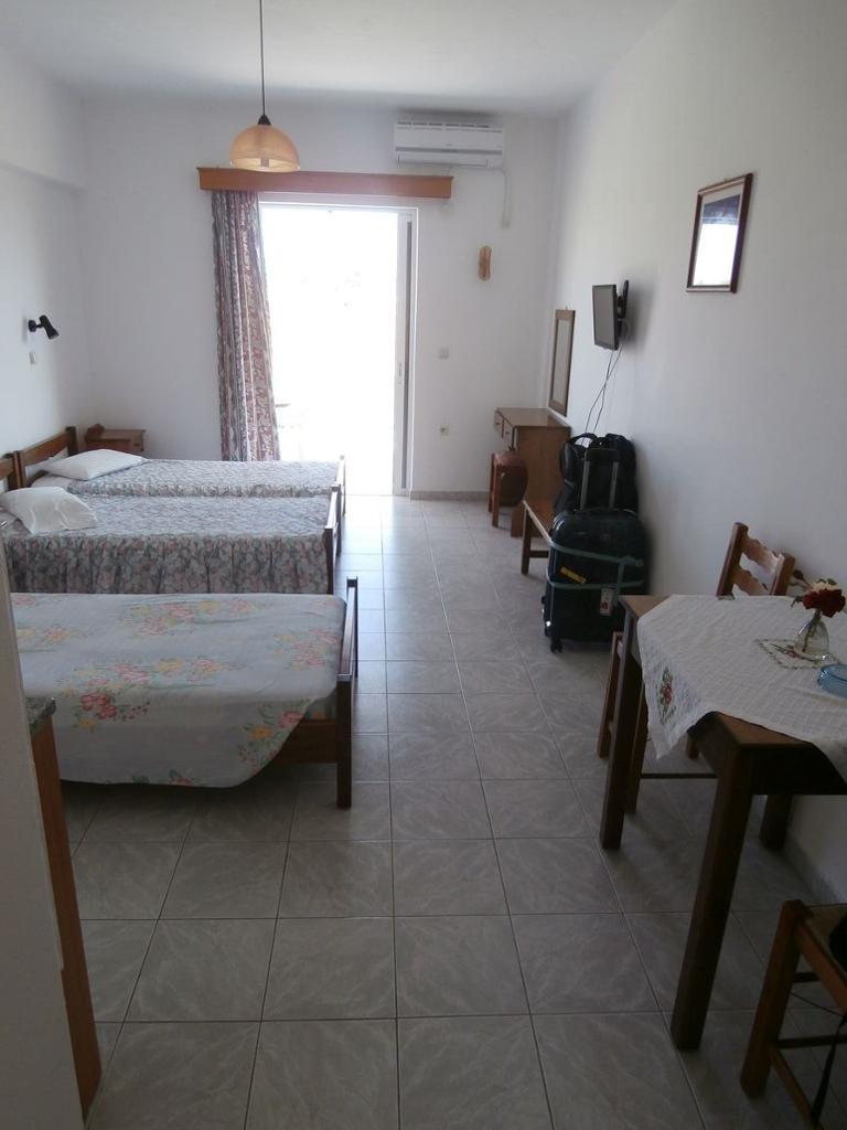 Ubytování čisté, prostorné. Měly jsme pokoj číslo 5 v přízemí, s teráskou směrem k moři a výhledem na okolní pole a pastviny. Ubytování rodinného typu, majitelé nám za pobyt 2x nechali na pokoji meloun z vlastní úrody jako milou pozornost (což prý dělají dost často). Úklid mimo neděle každý den. V okně i dveřích sítě proti hmyzu.