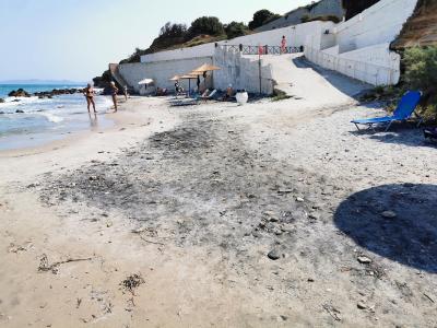 Moře je fajn, ale pláž špinavá a neupravená, nikdo se o ní evidentně nazajímá.