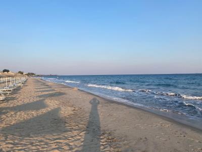 Moře bylo krásně teple, chce to počítat s vlnami, tím byly občas u břehu i řasy. Bar na pláži, je placeny, ale naji dobré frapé