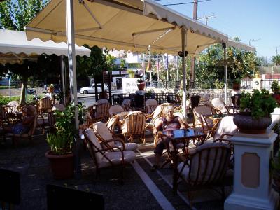Naše ubytování bylo v samostatném apartmánu v 1. patře. K dispozici byl kuchyňský kout s jídelnou a šatnou, samostatná ložnice s televizorem i klimatizací a sociální zařízení. Vše na úrovni. Jediné co nám vadilo byl výhled z terasy na solární panely, umístěné přímo v sousedství terasy a dva výfuky od plynových kotlů ohřívajících vodu.