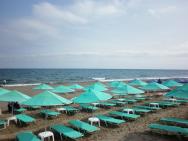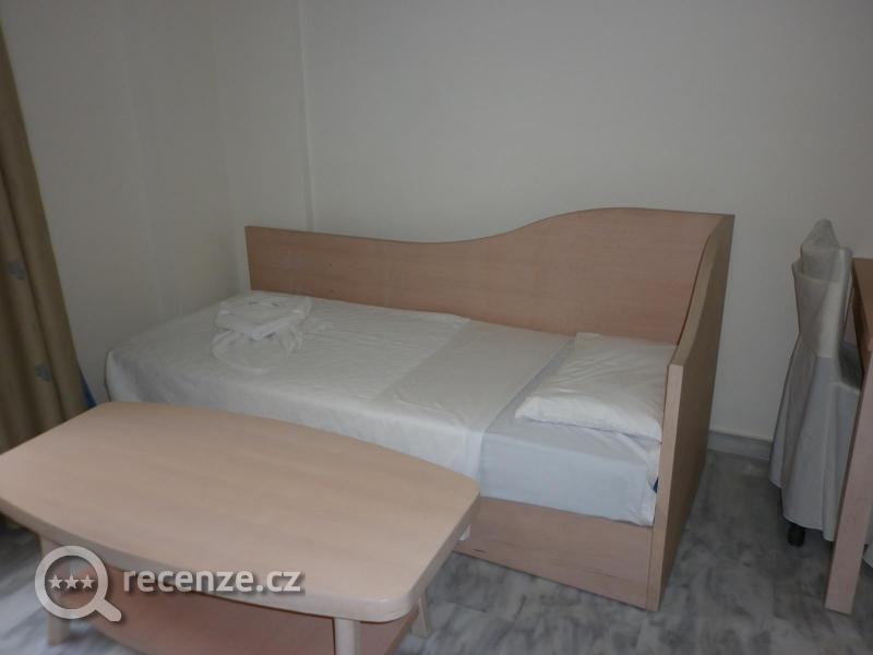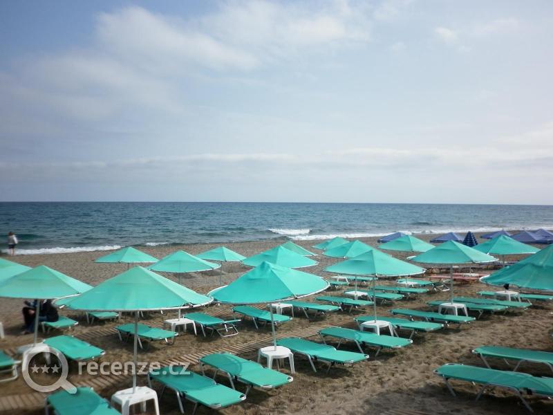 Hotel má výhodnou polohu přímo na písčito-obláskové pláži, je dobré použít boty do vody. Lehátka a slunečníky na pláži za poplatek.
