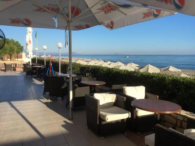 Těšili jsme se na řeckou kuchyni a dobré víno. Takže zklamání. All inclusive znamená, že se najíte a napijete, ale žádná sláva! Víno se podává krabicové, čili pijete horší kvalitu než doma. Obědy jsou slabší, většinou něco z mletého masa nebo kousek ryby - vysušené. Lépe na tom byli ti, co si jídlo platili. Nosili jim plné tácy, krásné masíčko, tzatziki, a my jsme jen mlsně pokukovali.