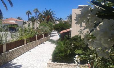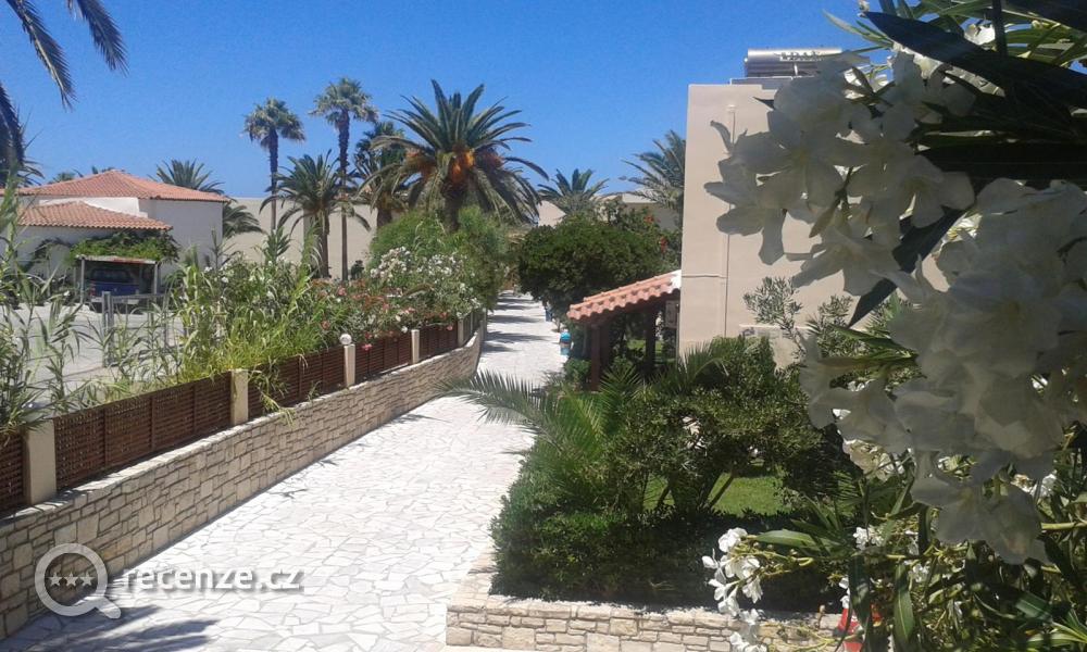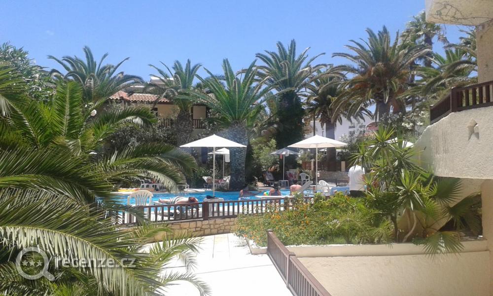 Malý hotel tvořený několika členitými objekty zasazenými do společné zahrady plné palem a kvetoucích keřů. Pokoje jsou na tříhvězdičkový hotel poměrně veliké. Nábytek není nejnovější, ale v pohodě vyhovuje. Matrace v postelích jsou nové. Koupelna je pěkná, zrekonstruovaná. V recepci hotelu si lze zakoupit možnost užívání trezoru na pokoji a klimatizaci. Skoro pořád tam foukal vítr, tak jsme klimatizaci ani v polovině července nepotřebovali - což nemusí platit pro jinak situované pokoje. Pokoje 101,104,105 a 106 jsou hned v budově recepce situovány na stranu od moře směrem do křižovatky před hotelem (někomu by mohl noční ruch na ulici vadit). V zahradě hotelu je malý bazén obklopený palmami - pěkné prostředí, ale je krytý před větrem a tak tam bylo celkem horko.