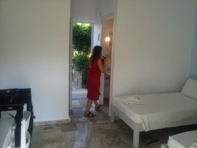 Měli jsme apartmány dole v "zahradě, malá koupelna se sprchovým koutem a záchodem, ale nějak jsme se tam vměstnali. Oddělené postele jsme normálně přisunuli k sobě a měli jsme z toho upravenou manželskou postel. každý den úklid a všude bylo čisto. I na "terase" se dalo sedět. Nábytek byl staršího data, ale byla vidět snaha majitelů o zvelebování.