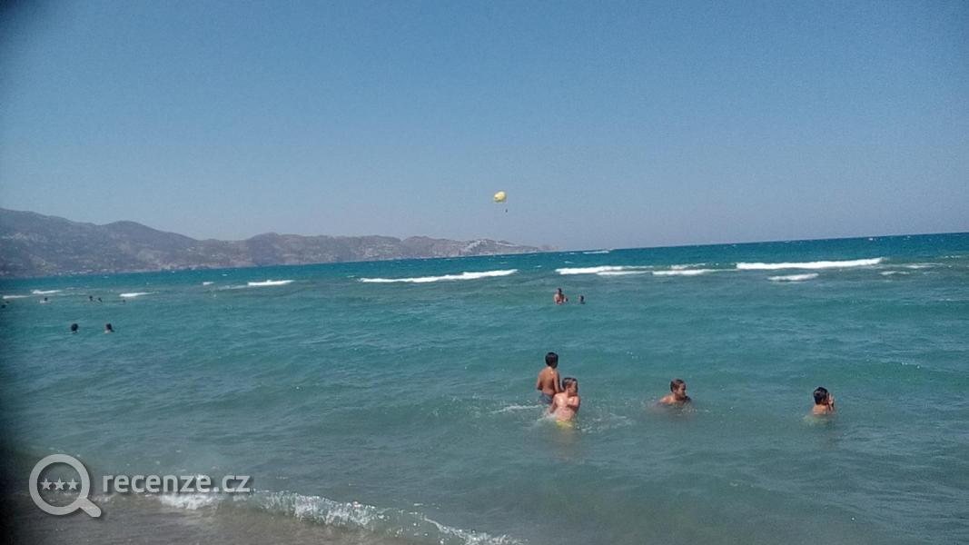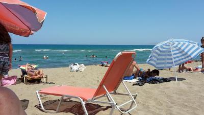 Větřík,vlnky,nádhedně čisté moře,dlouhá a široká pláž,dáte si např. 2 Frappé a 2 lehátka a slunečník máte zdarma