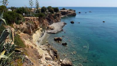 Pláže jsou čisté,písek a drobné kamínky na vymezených plážích...jinak spíš větší skalnaté plochy v moři.V této části Kréty skoro denně dost fouká,takže větší vlny,nedá se plavat.