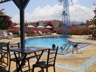 Hotýlek s krásnou zahradou plnou kvetoucích bugainvillií a muškátů, s bazénem tak akorát, možnost lehátek na slunku i ve stínu. Pool bar s milou obsluhou, totéž i v restauraci hotelu.