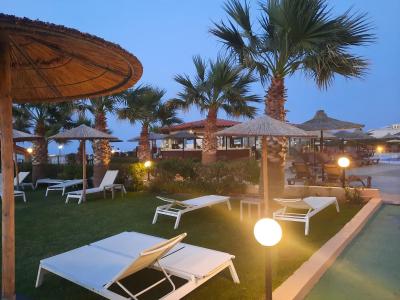 Soukromá pláž 100m od hotelu přes silnici nabízí lehátka pouze pro ubytované v našem hotelu, co je super , vždycky tam bylo málo lidí ale pláž byla špinavá a moře plné řas a kamení.