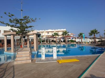 Bazén nebyl moc velký ale lehátek kolem něj a na trávniku bylo dostatek pro každého, k dispozici veliká terasa na sezení u tv kde se podával odpolední snack, vedle bazénu bar který byl jediný v hotelu kde se podával alkohol, někdy vznikali fronty ale barman to zachránil svými vtípky :))