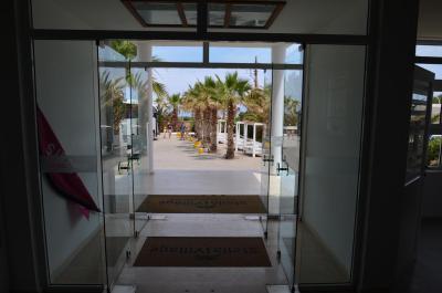 Na čistou a upravenou písčitou pláž se slunečníky a lehátky zdarma se dostanete po pár metrech chůze, přes úzkou klidnou komunikaci. Vstup do moře je pozvolný a zátoka chrání před většími vlnami.