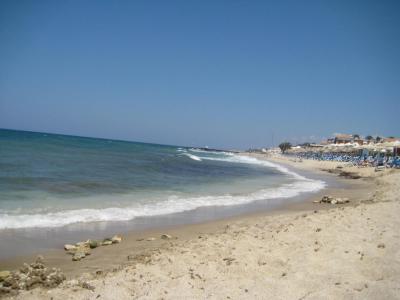 nejbližší pláž od hotelu je dostupná cca 1km po místní komunikaci, pláž je kamenitá. Pokud se vydáte doleva, tak jsou pláže již písčitější, ale je zde daleko více turistů. směrem doprava jsou další pláže, které jsou písčito kamenité. Ovšem my chodili každý den pěšky, našli jsme si různé trasy daleko dál, kde jsme si našli krásné útesy a s malými písčitými plážemi. Cesta na tyto úžasné pláže trvala cca hodinu a šlo se do kopce i z kopce. Vzhledem k tomu, že my jsme "chodiči", tak nás to neodradilo, a naopak jsme poznali daleko větší kus místního pobřeží a krásnější okolí.