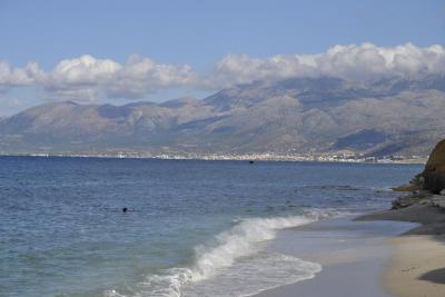 Krása, krása, krása. Pláž podle toho kam jdete : kamínky, černý písek nebo skály, vše cca do 10 minut chůze od Mylosu, samo sebou zase kopce. Cena za sluneční a dvě lehátka 6 euro na den.