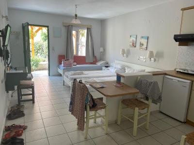 Hotel je dost vybydlený, potřeboval by renovaci pokojů a koupelen. Měli jsme studio, kuchyňský kout jsme nevyužili( stravu jsme měli polopenzi), vybaven byl opravdu velmi skromně. Koupelna- utržený zásobník na mýdlo, které chybělo, žádná polička na hygienické potřeby, špatný odtok ve sprše. Chyběla vnitřní klika ve studiu, stále jsme museli přehazovat klíč, jinak jsme se nedostali ven. Jednou se nám zabouchly dveře s klíčem venku, museli jsme vylézt oknem. Chyběl sušák na prádlo, ještě, že jsme si přivezli vlastní provázek. Ale umístění bylo mezi růžemi, v přízemí a měli jsme velkou terasu, to bylo pěkné.
