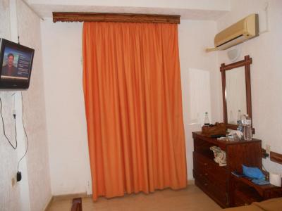 Jak ve chlévě - neomítnuté zdi, nábytek chatrný, z minulého století. V koupelně miniaturní sprchový kout s léta používaným nečištěným závěsem. Sedátko na WC pro zažranou špínu se nedalo používat. Klimatizace šla, ale sama se nevypnula. Lednička byla, ale dělala takový rámus, že jsme ji na noc vypínali. V pokoji nebyla jediná židle, jediný stolek, na balkonku jsme místo stolku měli sedátko bez opěradla! O čisté povlečení jsme si museli říkat. Trezor, ač v katalogu slibovaný, byl pouze na recepci.