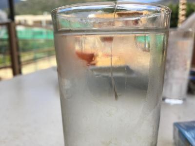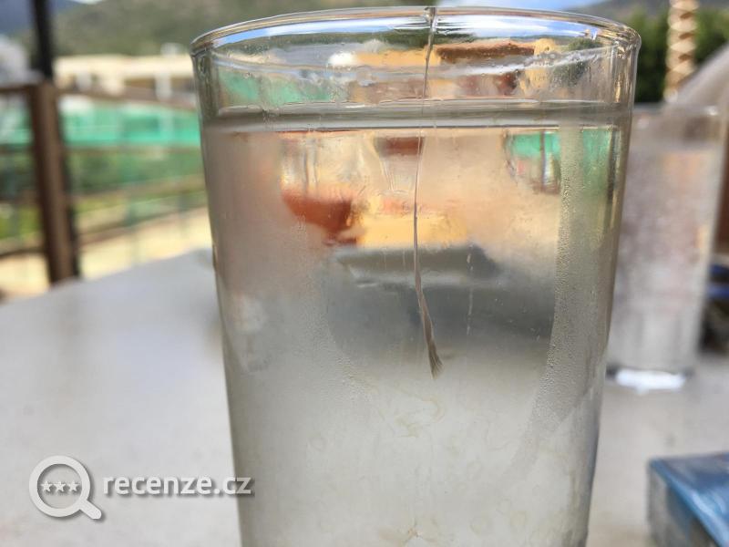 All inclusive bar - červené a bílé víno v krabicích na pultu ve 30 stupních. Z destilátů pouze Ouzo a Rakie. Voda, Coca-Cola, sprite a nějaká oranžová limonáda.