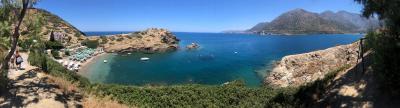 Hotel je na kopci, Bali je celé v kopci. Proto k pláži musíte sejít cca 150-200m (5min). Máte možnost volby z několika pláží v okolí. My chodili hlavně na pláž, na které je v moři postavené skákací město. Pro děti super, ale narušuje to trochu pocit z okolí a moře...prostě to kazí ve výhledu :). Dvě menší pláže na druhé straně jsme navštívili jen párkrát, pro nás na nich byla lehátka příliš natěsnaná a málo místa. Mimo prvních dvou dní, kdy byly větší vlny a tedy moře zakalené, bylo moře nádherně čisté (na jihu Kréty je tedy ještě čistší), ale na šnorchlování luxus.