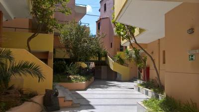 Vybavenost skvělá - supermarket a půjčovna aut hned naproti, další jste potkali o několik metrů dál. V okolí hotelu není v noci hluk, nejezdí tam žádná velká auta, je to dost daleko od hlavní silnice, ale není to tak, aby člověk během pár minut nedošel. Do centra města je to taky jen tak tři minuty a na pláž ani ty tři minuty, moc dobře umístěná budova.