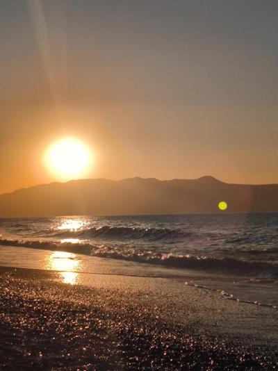 Pláž je čistá, někdy byly větší vlny. Vstup do moře je přes oblázky. Přemýšleli jsme o botách do vody, ale nakonec jsme našli místo, kde byl přechod přes oblázky relativně krátký, tak jsme je nekoupili. Pro malé děti bych je nejspíš doporučila. Vstup do moře je pozvolný, nicméně hloubka je už po pár metrech. Vodní sporty zde nenajdete, ale o kus dále jedno středisko je. Lepší je tam dojít přes městečko než po pláži. To je cca 45 minut chůze.