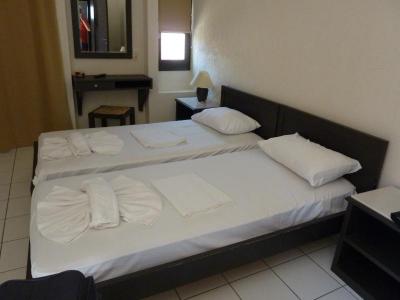Vybavení hotelu bylo standartní.K dispozici je bazén,bar,restaurace s malým obchodem, v recepci počítač(za poplatek),WI-FI,přímo v hotelu možnost zapůjčit auto(doporučuji smlouvat, jinak je to celkem drahé).Bazén s brouzdalištěm je umístěn v zahradě,takže tady najdete i dostatek stínu, k dispozici jsou lehátka i slunečníky zdarma.