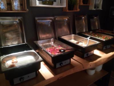 Hotel měl sám o sobě malou jídelnu, která mi přišlo, že byla sotva pro ubytované hosty. Vzhledem k tomu, že i na jídlo sem docházeli lidé z ostatních penzionu, tak neustálá fronta, špatně doplňované jídlo (fotky v příloze)