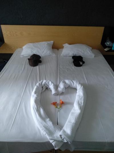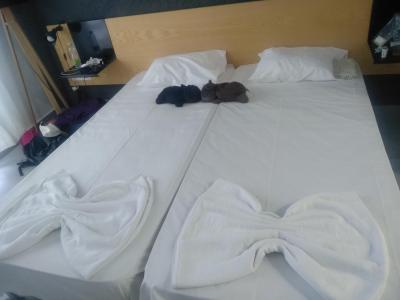Pokoje: byli jsme ubytovaní v pokoji s výhledem na moře, výhled mi úplně vyrazil dech, naprosto perfektní. Pokoj byl dostačující- postel, stoleček se zrcadlem, lednička, TV, klimatizace, tyč s ramínkama, závěsné poličky a koupelna s wc. Na dovolené v pokoji většinu času opravdu netrávím, na přespání a chvilkové návštěvy pokoje přes den byl pokoj úplně v pohodě. Každý den paní uklízela, každý den nám stlala postele do jiných tvarů, tak, jak to umí snad jen pokojeské :) Pokoj tudíž čistý, koš každý den vynešený.