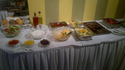 Sice sme sa najedli dosýtosti, aj pribrali :D nie je to zas taková sláva, ked idem na dovolenku očakávam ich špeciality, grecke jedlo a morske plody, z toho sme mali jedine tak rybie prsty, sardinky, grecky jogurt ( ktorý bol famozny) a feta syr na ranajky, jeden den tuhšie souvlaki, inak klasické česke slovenské jedlo hranolky, zemiaky, špagety, cestoviny, raz ryža, pizza, ktorá bola moc dobrá, rozne omáčky, mleté maso, karbanátky, kurací,bravčové maso, krísla stehna, rozne masa, šaláty zeleninové a zelnina ku každemu jedlu, moc dobrá, ovocie melon, pomaranš jablko, a dezerty, naj čokoládová pena, perník, pudingový desert, ale ten len raz... Nápoje celý den do 22.00 pivo, vino, voda, ouzo,raki,brandy, presladené limonády, cola, káva, capucinno, ale kto pije turecku kavu to nečakajte, treba priniest,.. malé hodnotenie je preto, lebo by som chcela trochu iné stravovanie na dovolenke, ale každopádne sme sa každý den dost najedli až prežrali :D