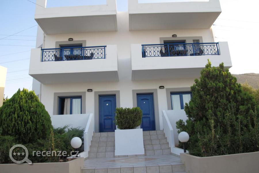 Ubytování bylo výborné. Prostorné a čistné apartmány, my jsme měly krásný balkon. Některé aparmány mají poseznení před, bez ohraničení, ale to vůbec není problém. S jídlem jsem byly náramně spokojené, dobré víno, pivo, raky, ouzo a brendy. Doporučujeme ouzo s citronádou. Moře blízko, cca 3 minuty - krásně čisté.