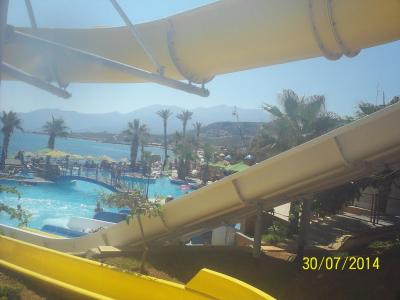 Bazény byly super, dětem ani nevadila slaná voda, do sladké jsme ani nešli. U bazénů jen problém s opilými puberťáky. Hlavně rusky si mohly dělat co chtěly. Vlévaly pivo do bazénu, kouřily v bazénu. Na personál se jen usmály a měly dovoleno vše. 2 z nich měly 18, další 2 ně a tak ty starší nosily kelímky s pitím. Měly jich asi 40ks, takže po tom pivu, brandy a ouzu vypadaly na tom slunci výborně. Museli jsme je zklidnit až my a pak jedna slušná ruská maminka s malým chlapečkem.