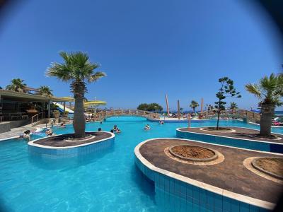Nejsme nároční klienti. Na pokoj se jdeme jenom vyspat a věděla jsem, že pokoje jsou zařízené stroze. Což bylo v pořádku. Ale jestli tento hotel je čtyřhvězdičkový, tak já jsem asi slepá. Šváby v hotelu, výtahy věčně nejezdily a když jo, tak jsou tak špinavé, že nám bylo pomalu odporné se jich dotknout. Během sezóny uzavřeli druhou restauraci, takže z all inclusive se stala místnost, najdi si rychle volné místo a sněz si to, než Ti to sežerou všichni ostatní. Z bazenovych toalet jde solidní smrad, úklid pokoje, tak aby se neřeklo. Jediné pozitivum jsou opravdu bazény a zábava pro děti. Nám stačilo jednou a sem se už určitě nevrátíme a věřím, že stejné peníze zainvestujeme lépe do jiné dovolené.