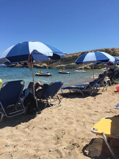 Úžasné moře, pláže jsou sice trochu menší, ale pěkné. Krásný přístav a kostelíček je nedaleko od Taverny Argo.