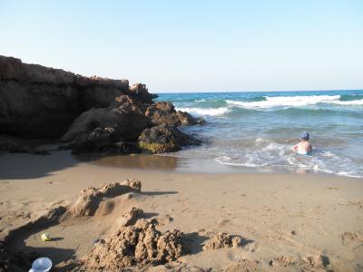 Pláž vlastní tento hotel nemá, chodíte dolů na veřejné, lehátka platíte,vždy jsme ale našli místečko, někdy jsme tam byli k večeru i sami.Všude písek,pozvolný vstup do vody nám vyhovoval,máme malé dítě ,takže spokojenost! Voda křišťálová a od 4.-11.9.kdy jsme tam byli neskutečně vyhřátá,takže i já jsem neměla problém vlézt do vody...občas velké vlny.