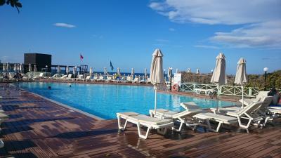 Malebný členitý komplex poskytuje vynikající zázemí, dva velké bazény, terasa, na níž se pořádají hudební večery, opulentní hostiny od rána do večera, příjemný personál. K moři je lepší přístup mimo hotel, ale to je nedaleko.