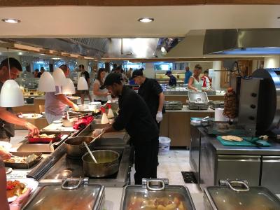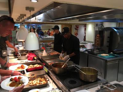 1) Hlavní restaurace nabízí asi největší rozsah jídel. Sem jsme chodili na snídani a na večeři. V restauraci bylo vždy několik stanovišť s přípavou jídel před hostem (ráno omelety, palačinky, večer těstoviny, koblihy a případně tématická jídla.
