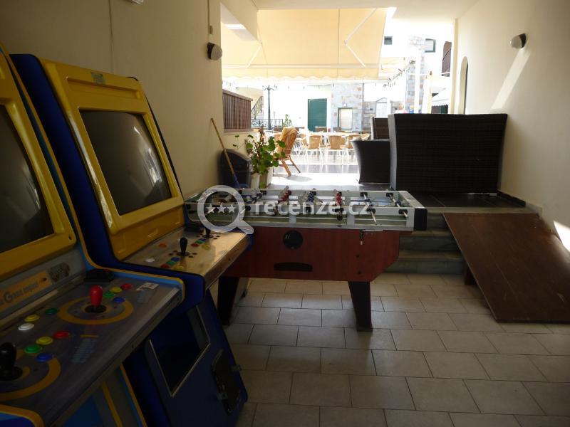 vstupní hala s recepcí, TV místnost, venkovní bazén s dětskou částí, kulečník, mini market. Lehátka a slunečníky jsou u bazénu zdarma.