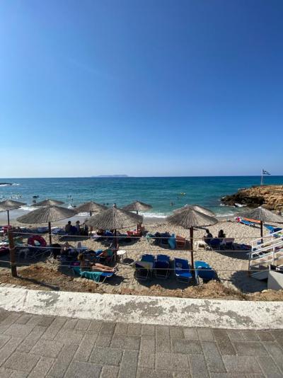 Pláž perfektní, jen přes silnici od recepce. I bar hotelu je blízko k pláži, takže je možné si od moře chodit pro piti. S lehátky úplně stejná zaležitost jako u bazénu, musíte přijít brzy. Moře čisté, písek i oblázky. Slunečníky už mají něco za sebou ale hlavně že byl i trochu stín na hlavu.